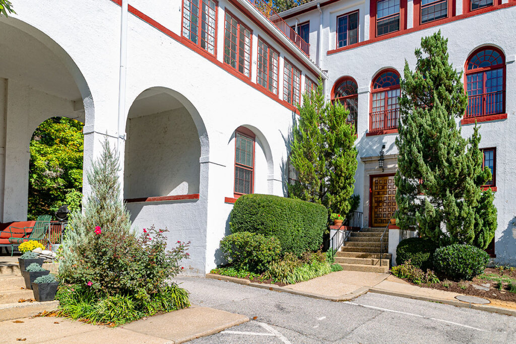 In 1922, Friz designed his third group of apartments, also in an Italian Renaissance style, the present day Gardens of Guilford, to harmonize with The Tuscany-Lombardy buildings. A 1922 article states the architect’s intention to unify all three buildings and stated, “when completed the entire group, which will occupy a tract containing about five acres of land, will be encircling (sic) by a garden wall, insuring privacy and completing the Italian garden effect, which is the dominating feature of the design.” Although the wall was never realized, the “Italian garden effect” was splendidly achieved.