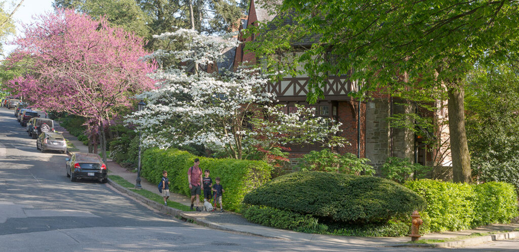 John Ahlers was the architect of the first homes located at 213-215 Tuscany and 201-203 Ridgemede. Ahlers continued his work on these houses after the Mullan Company took over the building project. He left to design the Original Northwood neighborhood with the Roland Park Company. The Mullan Company employed architect Cyril Hebrank to finish the houses and retained Ahlers’ Tudor designs. So successful was the entire development that Gardens, Houses, and People, in September 1938 issue described Tuscany as “an ideal place to live.”