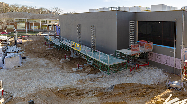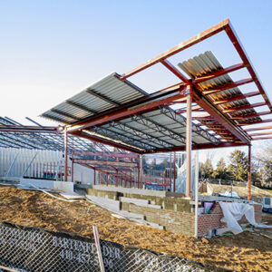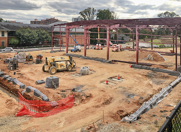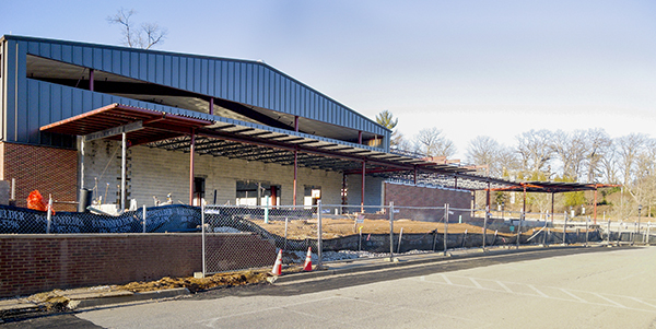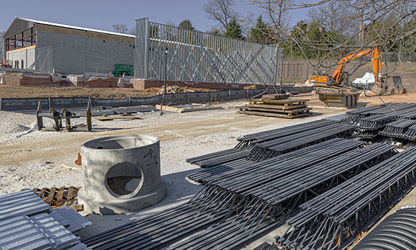 (5) Storm water runoff after the completion of the project will go to an underground tank on the east side of the athletic center, a 120 feet x 100 feet single-story building with 10 squash courts being constructed on the Charles Street side of the middle school. Framing for the building is now complete.